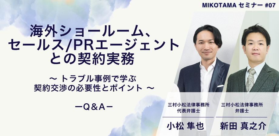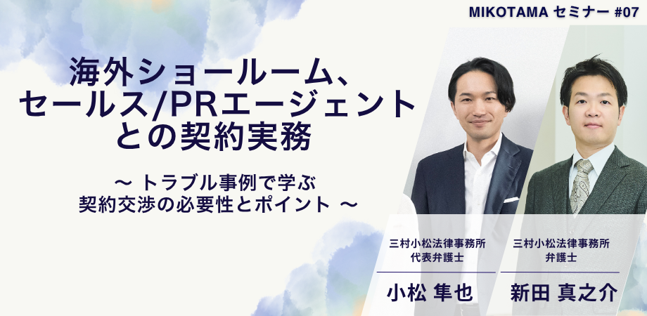 海外ショールーム、セールス / PRエージェントとの契約実務~トラブル事例で学ぶ 契約交渉の必要性とポイント~⑵2026年2月19日、三村小松法律事務所主催のMikotamaセミナー#07「海外ショー...