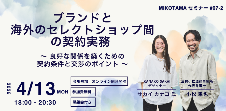 『ブランドと海外のセレクトショップ間の契約実務 ~良好な関係を築くための契約条件と交渉のポイント~』を開催します。